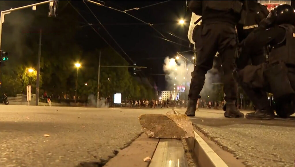 U jednom trenutku su poletele plastične flaše od demonstranata ka Žandarmeriji, piše na sajtu te televizije.